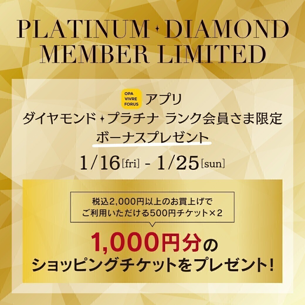 ダイヤモンド・プラチナランク会員さま限定💎1,000円分のショッピングチケットプレゼント! 1/16(金)~1/25(日)